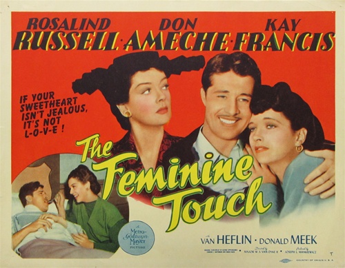 At its best, screwball comedy is a wonderful thing. It is a manic, charming, delightful walk into the wacky world of a person who lives very much in an alternate universe. The Feminine Touch (1941) does NOT fall into this category. The film features Rosalind Russell as Julie Hathaway, the wife of Prof. John Hathaway (Don Ameche), a college professor who despises jealousy as a worthless emotion, and who has decided to ditch his university job and write a book on the subject. Enter Nellie Woods (Kay Francis), the editor for publisher Elliott Morgan (Van Heflin). Elliott's not very involved in his business - Nellie does all the work in the publishing house, as her boss is too busy pursuing the high life and women. Unfortunately, Nellie is also in love with Elliott, and sees this book as an opportunity to force Elliott into paying some attention to her. Elliott, of course, is much more interested in wooing Julie. Julie's problem is that while she is not the least bit interested in Van, she is dismayed that John doesn't care that another man is trying to seduce her.